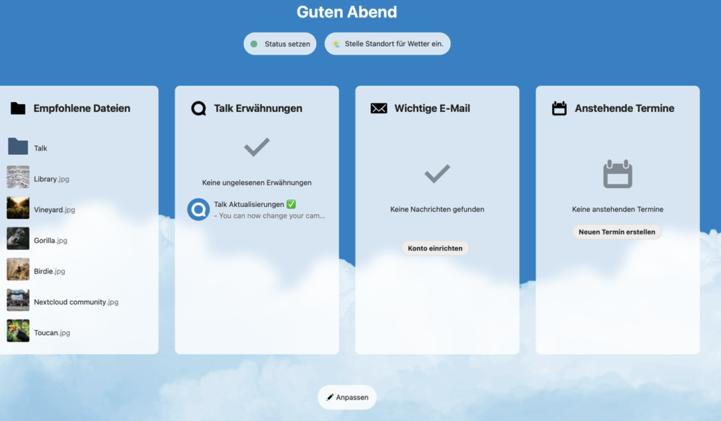 Als Zugangsdaten für die Nextcloud wird ein Benutzername, sowie ein Passwort benötigt.