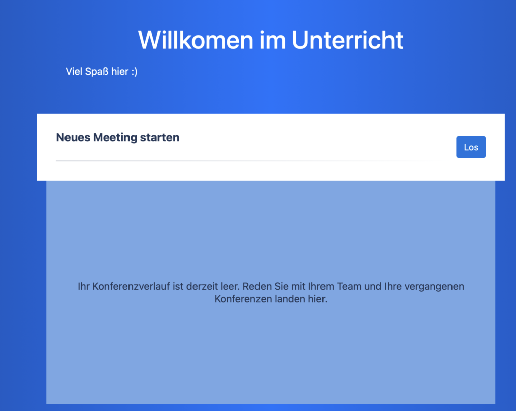 In dem weißen Feld „Neues Meeting starten“ wird der Raumname eingetragen. Danach auf „Los“ klicken.