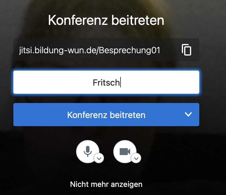Danach trägt man einen Namen ein. Dieser wird innerhalb der Konferenz angezeigt.