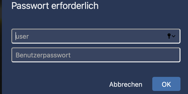 Der Organisator wird gebeten einen User sowie ein Passwort einzugeben.