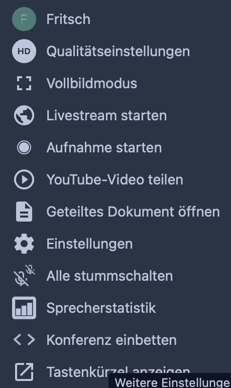 Verlassen: Mit Klick auf dieses Symbol verlassen Sie die Konferenz.